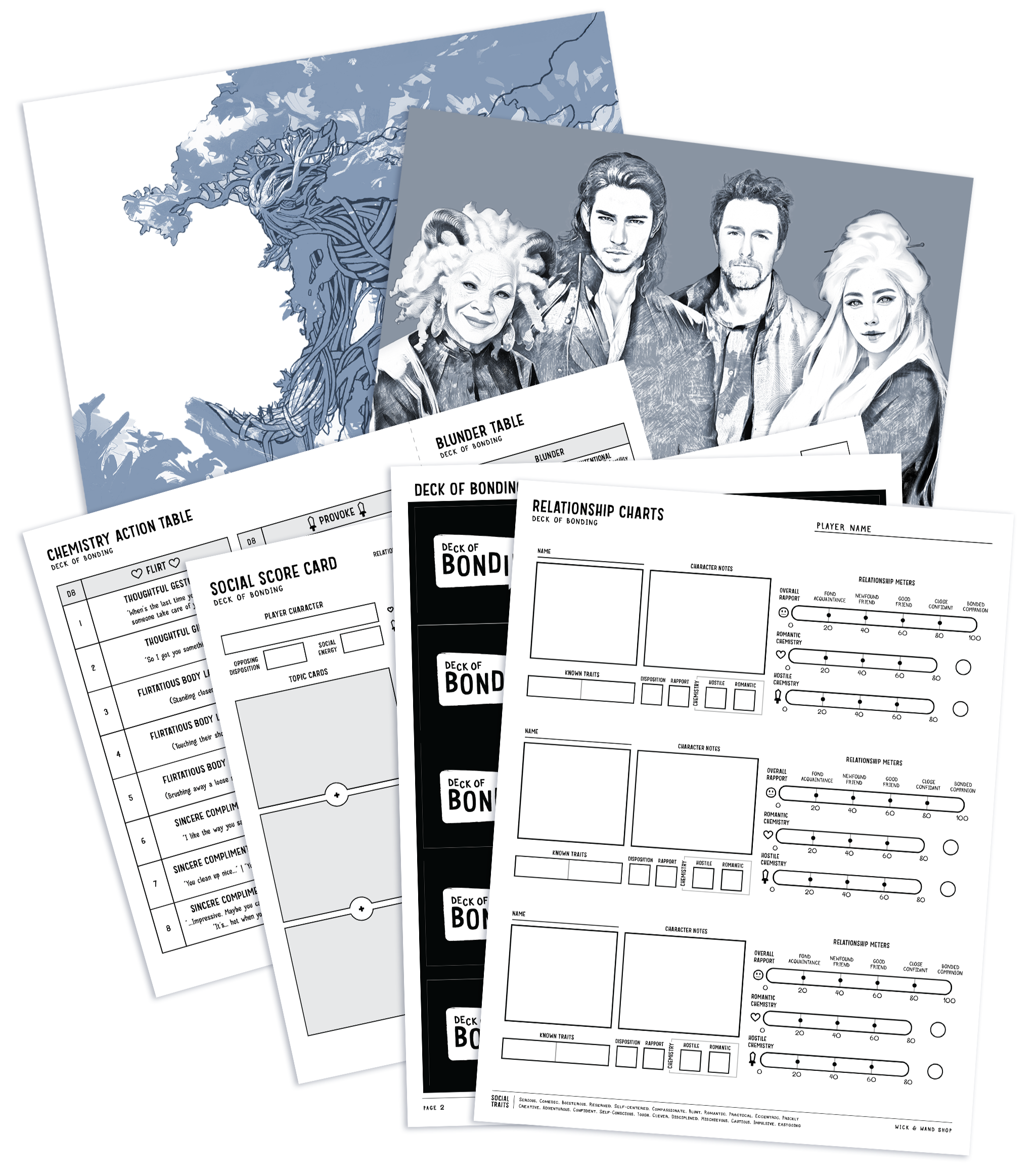 Have you ever wanted to make the interactions between NPCs and player characters more engaging and rewarding? RPGs (even in the videogame genre) involve mechanics for building relationships to create fun ways to learn more about the worlds we play in. NPCs have personalities, goals, and feelings. With the Chimera Institute setting book, you can bring these details to life with the "Deck of Bonding" mini-game, an RP-based set of rules for diving deeper into NPC and player relationships!Each character at Chimera has their own history and struggles. Reveal what makes them tick over time as you build rapport. Explore their backgrounds in carefully detailed plot-hooks & story snippets!